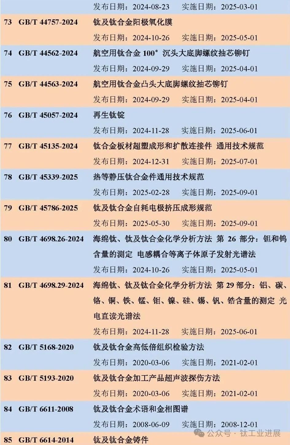 現(xiàn)行鈦及鈦合金國(guó)家標(biāo)準(zhǔn)(2025)